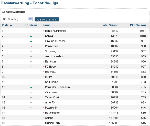 Tooor.de-Liga: 840,9 Punkte - Gesamtrang: 3231 -