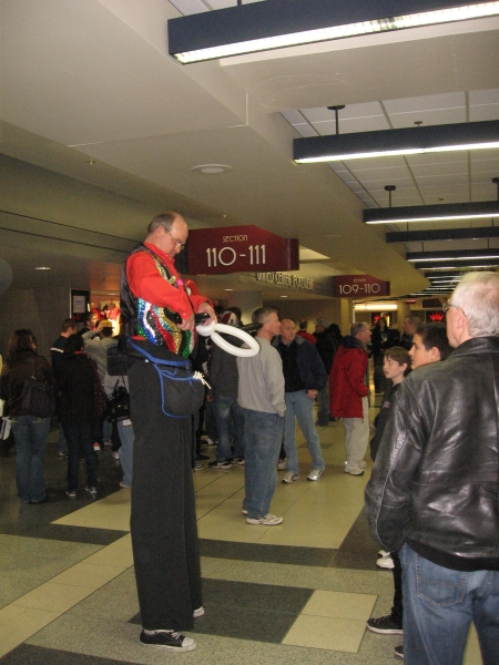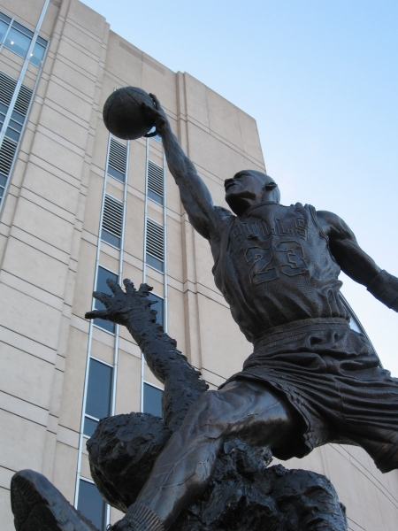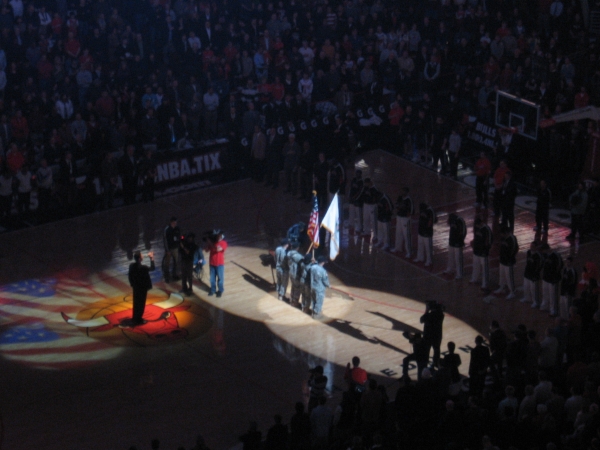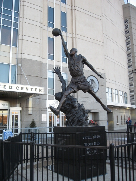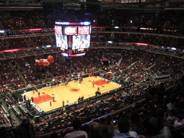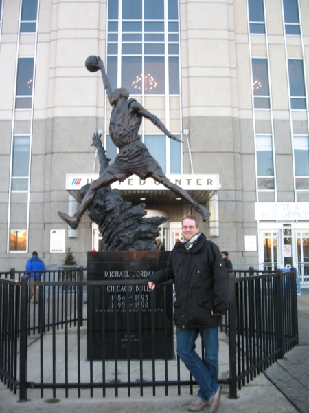 Ich bin vom Hotel aus mit'm Taxi zum United Center gefahren. Das hat keine 7 Dollar gekostet. Der Anpfiff war um 19:30 Uhr. Ich war extra schon um 17:00 Uhr da, um das ganze Drumherum mitzubekommen. Der Taxifahrer hat mich vor der Halle an der Nordseite rausgelassen. Allerdings direkt vor 20 schlechtgelaunten Obdachlosen. Da diese ziemlich aufdringlich wurden, habe ich dann erstmal eine 50 Meter-Sprint hingelegt. Zum Laufen hatten die zum Glück keine Lust :huebscher: Sooo, als erstens mal die Jordan Statue abfotografiert und mich selbst davor fotografieren lassen (wie von Norton empfohlen von Asiaten. Die laufen mit meiner Billigkamera nicht weg :mrgreen: ;)). Asiaten ist auch schon eine gutes Stichwort... unglaublich, wieviele da vor Ort waren :gruebel: Direkt nach der Fotosession bin ich zum Will Call, mein Ticket abholen. Der Kartenverkäufer äußerte seine Bewunderung, dass ich extra aus Deutschland zum basketballgucken gekommen bin. Ich habe ihm mal in dem Glauben gelassen :zwinker: Er sagte noch, dass Einlass um 6 sei. Um 6? Es ist doch erst 17:20 Uhr :huebscher:. Die Lust nach einem Spaziergang in der Gegend war mir aufgrund der vorherigen Begegnung vergangen und die -6 Grad + Windy City hinterließen in Gesicht und Händen (Fotografierhände) schon wieder ihre beißenden Spuren. Also habe ich mich zu den anderen Frühankömmlingen in so einer Art Vorraum begeben und 40 Minuten gewartet. Dort hing dann auch schon das Schild mit "no alcoholics" :cry: