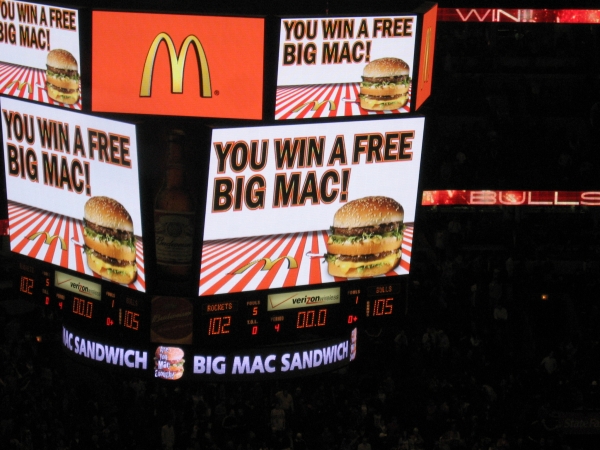 Die Halle war gut gefüllt (23.000 und nochwas). Vor Beginn gab es ein Gedenken an einen ehemaligen Spieler und einen Trainer (oder so). Das war sehr nett gemacht. Erst wurden auf dem Würfel Bilder und Filmausschnitte gezeigt. Dann Klatschten alle. Dann gab es eine Schweigeminute (an der die laute Klimaanlage nicht teilgenommen hat :huebscher:) und dann haben nochmal alle geklatscht. Danach wurden auf dem Viedeowürfel einige Spielausschnitte von Jordan, Pippen etc. gezeigt. Jeder Korb wurde vom Publikum laut bejubelt. Dann wurde natürlich obligatorisch die Hymne gesungen :rolleyes: und der Einmarsch der Spieler mit Dunkelheit, Feuerwerk und Tamtam wurde zelebriert. Irgendwie hat mich dass alles emotional ziemlich berührt. Ich hätte auf Befehl heulen können. Das hat mich doch gewundert, weil ich übetriebene Show normalerweise doof finde. Ich bin wohl schon zu lange von zu Hause weg und habe langsam Heimweh :cry: :rolleyes: :gruebel: Dann ging das Spiel los. Housten marschiert sofort 15 Punkte Weg. Die Bulls spielen schlimm (viele Aufdoppsfehler :huebscher:), kommen aber erstaunlicherweise irgendwie immer wieder ran. Die Stimmung im Publikum ist unterirdisch. Totalle Stille, ein wenig Klatschen bei eigenen Körben. Das lauteste im Publikum sind die Bierverkäufer. Da es aber außerhalb des anfangs erwähnten Pubs nur Budweiser gibt, verzichte ich wohlweißlich :mrgreen:. Auszeit. Auf einmal ein brüllernder Lärm von den Rängen. Was ist denn nun los? :grubel: Des Rätsels Lösung: auf der Videowall fahren drei virtuelle Donnats (mit der Startnummer 1, 2 und 3) ein virtuelles Rennen. Wenn der Donnat mit der Nummer gewinnt, die auf der Donnatgewinnspielkarte ist, die man am Eingang bekommen hat, bekommt man einen freien Kaffe. Die Leute gingen ab wie Schmitts Katze und haben ihren Donnat aus vollen Herzen angefeuert. Pünklich zum Wiederanpfiff nach der Auszeit legte sich die Stimmung aber wieder :huebscher: :huebscher: :huebscher:. Vom sportlichen her war ich eine wenig enttäuscht. Ich habe mich hier in Chicago im Fernsehen schonmal NBA-warm-gesehen und finde die sportartig eigentlich schön dynamisch. Live wirkte alles ein wenig pomadig. Ich kann nicht sagen, ob es daran lag, dass das Spiel für die NBA mittelmäßig war, ich zu weit oben saß oder Basketball live einfach pomadig ist :grubel: :mrgreen: Ganz zum Schluss kam dann aber endlich doch nochmal richtig Stimmung auf. Die Bulls haben in den letzten 7 Minuten einen 20 Punkte Rückstand gedreht und noch gewonnen. Alle Leute Standen. Endlich Emotionen.