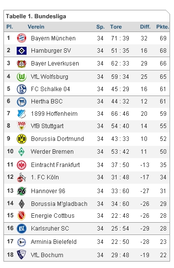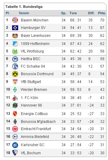 Wo landet Dein Verein am 34. Spieltag -> Tabellenrechner vom Kicker