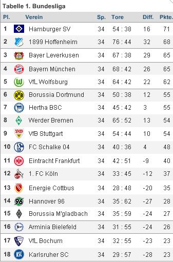 Wo landet Dein Verein am 34. Spieltag -> Tabellenrechner vom Kicker