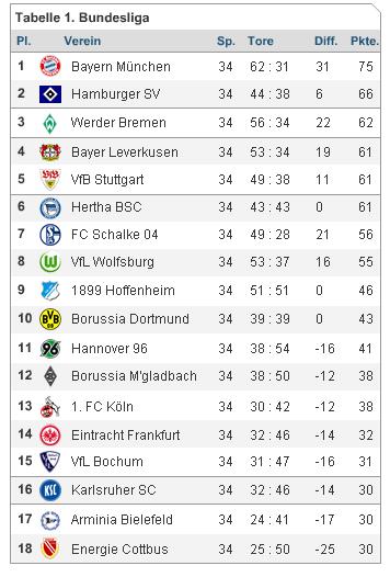 Wo landet Dein Verein am 34. Spieltag -> Tabellenrechner vom Kicker