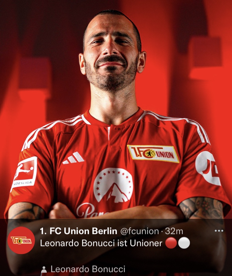 "Die „Gazzetta dello Sport“ befeuert die Union Berlin Transfergerüchte um Leonardo Bonucci. Laut der italienischen Sportzeitung gab es am Dienstag ein Treffen zwischen dem Innenverteidiger und Vertretern von Union Berlin. Für beide Seiten verliefen die Gespräche „zufriedenstellend“, wie es heißt."