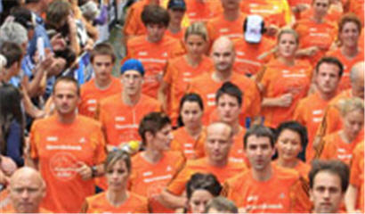 Kleiner Tipp. Sind die mit dem orangenen Shirt.