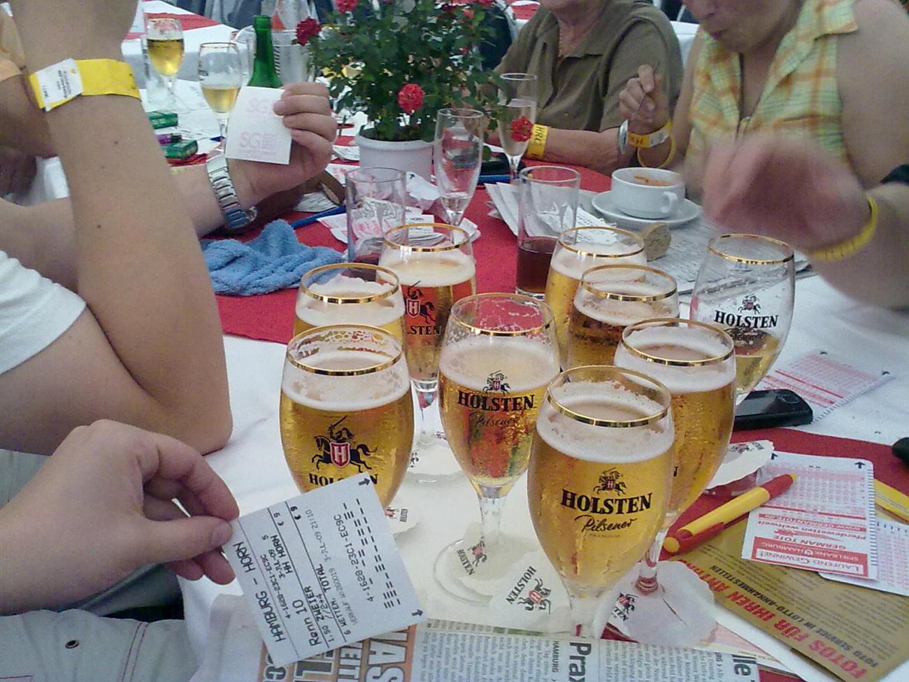 uschi und ich sind gerade gerade beim hamburger galopp derby. Dreckshitze, freibier und wetten. Ist das geil