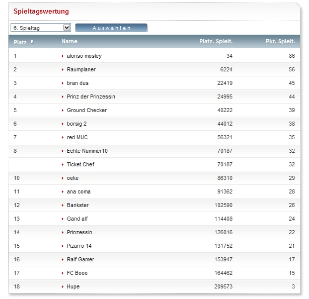Zum ganz großen Wurf hat es doch nicht gereicht: 86 Punkte. 34. in der Spieltagswertung. Der Sieger ist mit 106 Punkten doch noch ein Stück entfernt. :winke: