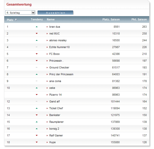 Zum ganz großen Wurf hat es doch nicht gereicht: 86 Punkte. 34. in der Spieltagswertung. Der Sieger ist mit 106 Punkten doch noch ein Stück entfernt. :winke: