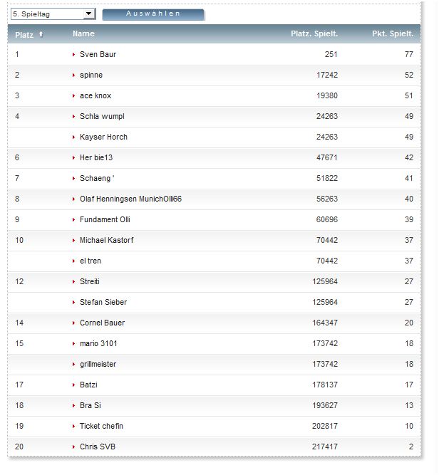 Ich kann sowat nich aber du hast 30 Punkte und liegst auf Rang 6 inner Spieltagswertung. :winke:
