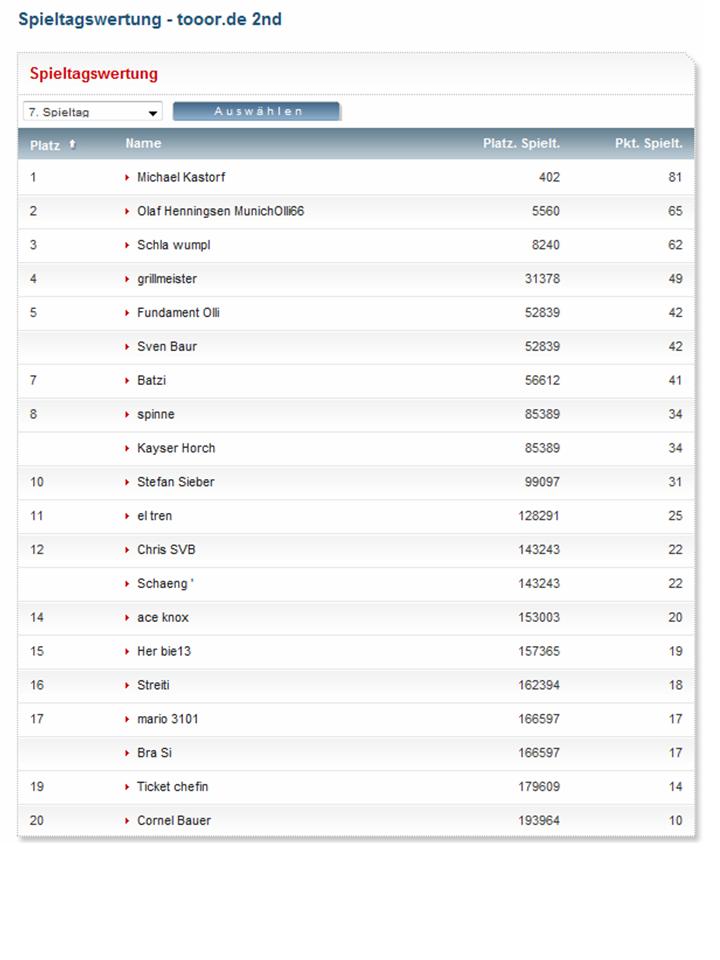 Ich kann sowat nich aber du hast 30 Punkte und liegst auf Rang 6 inner Spieltagswertung. :winke: