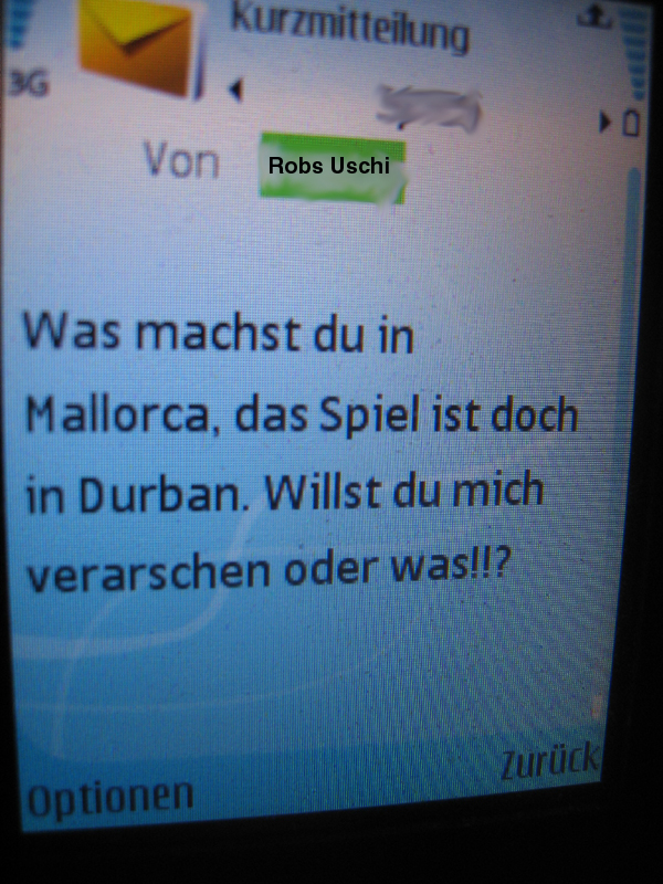 Vorab das wichtigste Foto des gesamten Aufenthalts. Vorgeschichte: Rob kommt am Sonntag auf Malle an und kriegt ne SMS von Uschi: