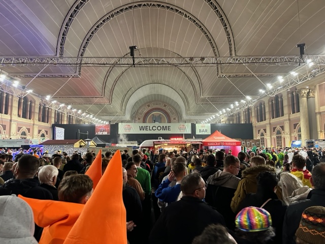 Auf dem Fußboden im Ally Pally hat es mir fast die Schuhe ausgezogen, so sehr klebt der ...