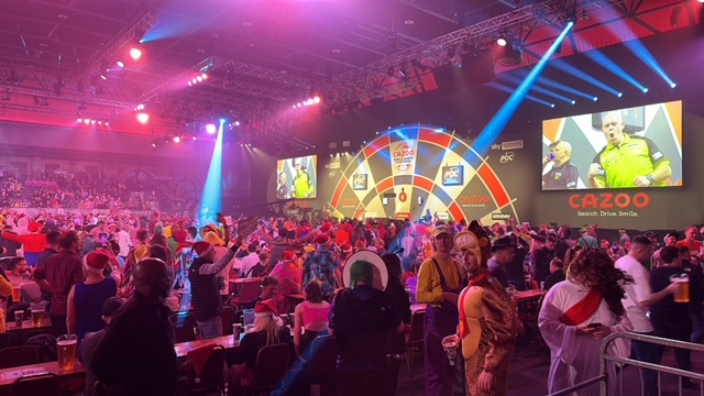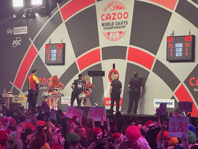 Auf dem Fußboden im Ally Pally hat es mir fast die Schuhe ausgezogen, so sehr klebt der ...