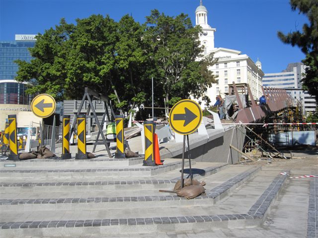 Die Fussgängerbrücke von der Waterfront in die Innenstadt muss auch noch ein wenig mehr bearbeitet werden; haben auch sonntag geschafft...