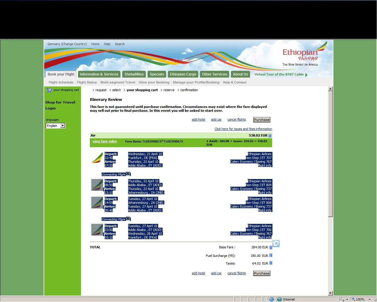 Für 538 Euronen inkl Steuer und Gebühren vom 21. bis 27.4 ab FFM mit relativ kurzen Wartezeiten in Addis Abeba ![]()