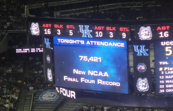 halb houston in blau. unglaublich viele kentucky fans, rest haelt sich in grenzen