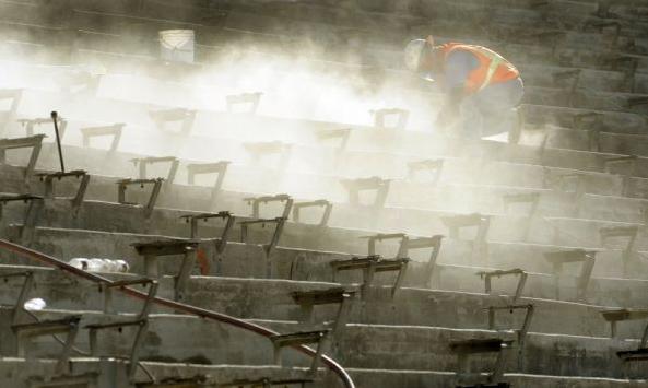 keine bänke mehr, sitze werden überall installiert, kapazität geht damit runter, von 94.000 auf 85.000