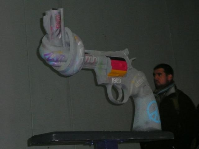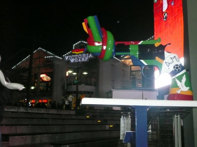 Als Treffpunkt könnte man ganz gut die "Deutsche Pistole mit Knoten" vor der Shopping Mall "Victoria Wharf" (Wasserseite) nehmen. :huebscher: