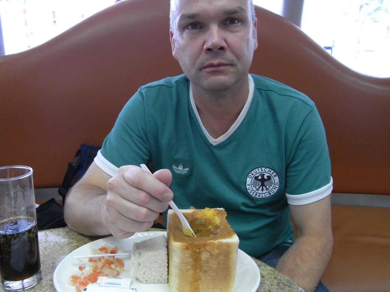 Anschließend etwas Geld getauscht und bei MTN das Handy mit dem FIFA SIM aufgeladen. Jetzt war der Kontakt mit der Heimat da. Nachdem wir uns dann so richtig mit südafrikanischem Rindfleisch gestärkt hatten und der Weiterflug nach Durban anstand, nochmal zum Ticketpoint und siehe da , auf einmal ging alles wie von selbst, KK rein und Tickets mit der Paarung Germany – Spain kamen aus der Box und meine Hautfarbe war auch wieder mitteleuropäisch.