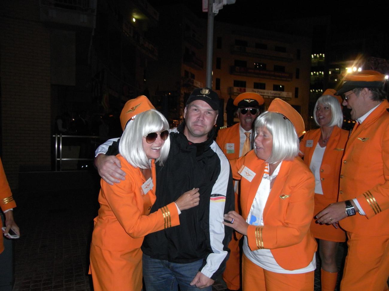 Draußen war dann erstmal das Feiern der Spanier angesagt und auch Manolo war davon nicht weit entfernt. Seine Truppe haute ziemlich auf die Pauke und nachdem uns noch der sogenannte ZDF – Fanreporter über den Weg lief, ging es dann per Shuttle zurück nach Gold Reef City.