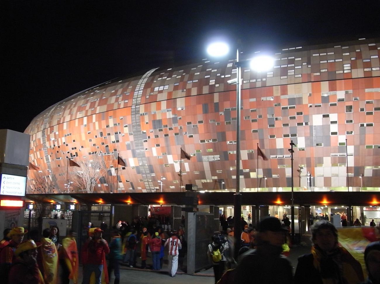 Am Samstagmorgen zurück in die Mall ,erst Geschenke für daheim besorgt und anschließend mit Maca und Sox ,die soeben aus Johannesburg eingetroffen waren ,ein 500g Steak und 2-3 Bier in der Kneipe „ Dros“ verdrückt. Abends dann zum Fanfest nach Melrose Arch um wenigstens Platz 3 zu retten. Wir hatten für 17 Uhr ein Sammeltaxi geordert , dessen Fahrer sich um 17:15 Uhr telefonisch meldete ,das er noch 3 Minuten zu uns benötigen würde .Aus den 3 Minuten wurden 30 und wir suchten uns das nächstbeste Sammeltaxi . Da dies mehrere Aufkleber vom Sender ARD drauf hatte ,schien es uns relativ kompetent ,um uns nach Melrose zu bringen . Aus den nötigen 12 km wurden dann fast 30 ,da der Fahrer diesen modernen Stadtteil nicht kannte .Aber immerhin angekommen und wir wussten dann auch , warum Melrose den Zusatz Arch bekam, denn es war Ar(s)ch-kalt. Zudem wurde uns dann noch eisgekühltes Bier serviert und auf die Nachfrage beim Kellner, ob es auch normaltemperiertes Bier gäbe , sagte er ,wir sind hier in Afrika und da ist kaltes Bier an der Tagesordnung. Ich wärmte mich dann eben an den aufgestellten Heizstrahlern und am eisgekühlten Bier. Zwischendurch kam dann auch noch ein Bus mit orangeuniformierten Holländermädels , die um ihren Bus eine Polonaise tanzten und dann in der Fanfestmenge untertauchten .Wir waren eine schöne Ansammlung von erlauchten Tooor-Kameraden am anderen Ende der Welt und ich hoffe ,ich bekomme sie jetzt noch alle zusammen .