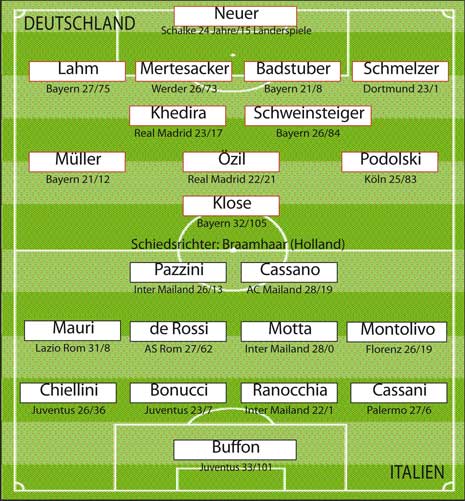 Was habt Ihr denn da für eine Aufstellung? Wo sind die ganzen Lieblinge hin wie Toni, Peppo Inzaghi, Materazzi, Mister Fairplay Totti...etc.?