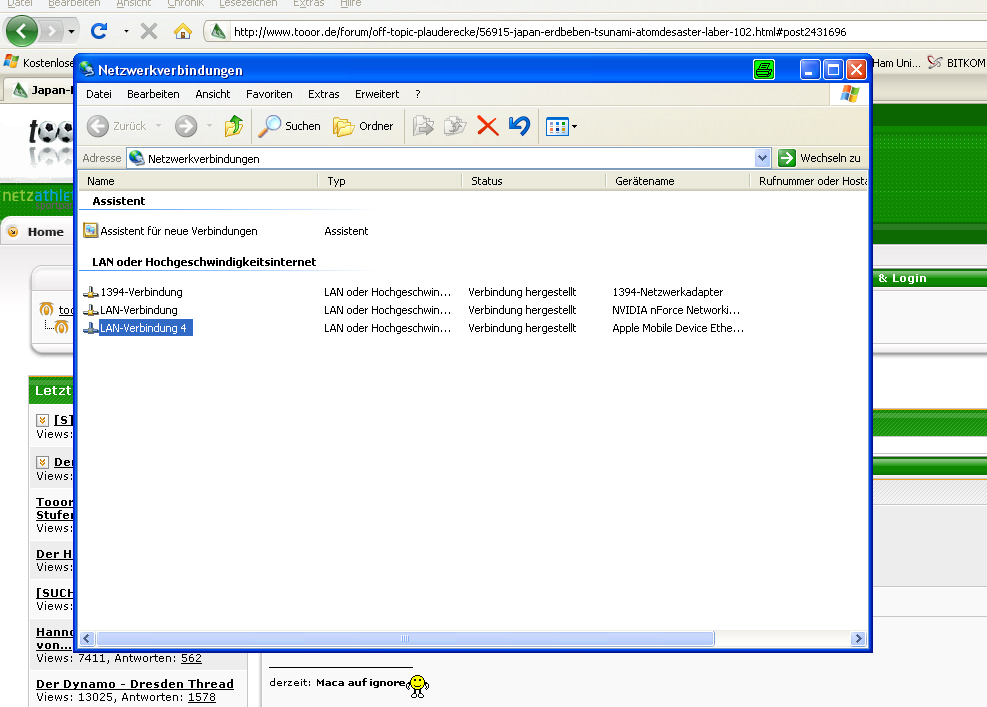 Rechner (bei mir XP) Start-Einstellungen-Netzwerkverbindungen-LANVerbindung mit Apple Device auswählen