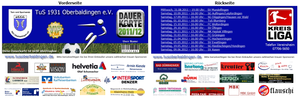 Freitag, den 12.8.2011 ab 10.00 beiginnt beginnt der Dauerkartenvorverkauf des TuS Oberbaldingen.