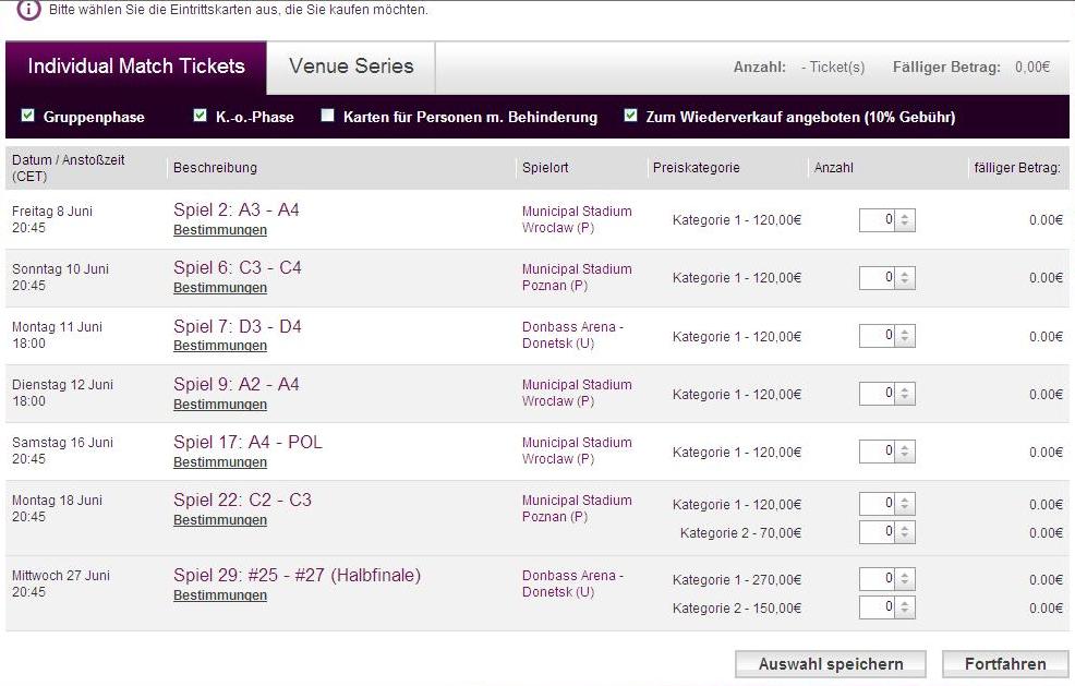 • EM 2012 1. Verkaufsphase