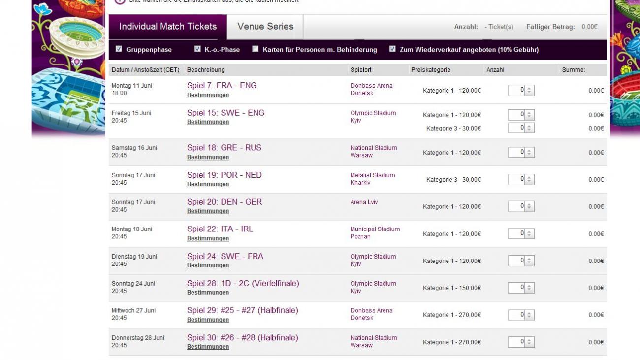 • EURO 2012 - Ticketzuteilungen 1. VK-Phase