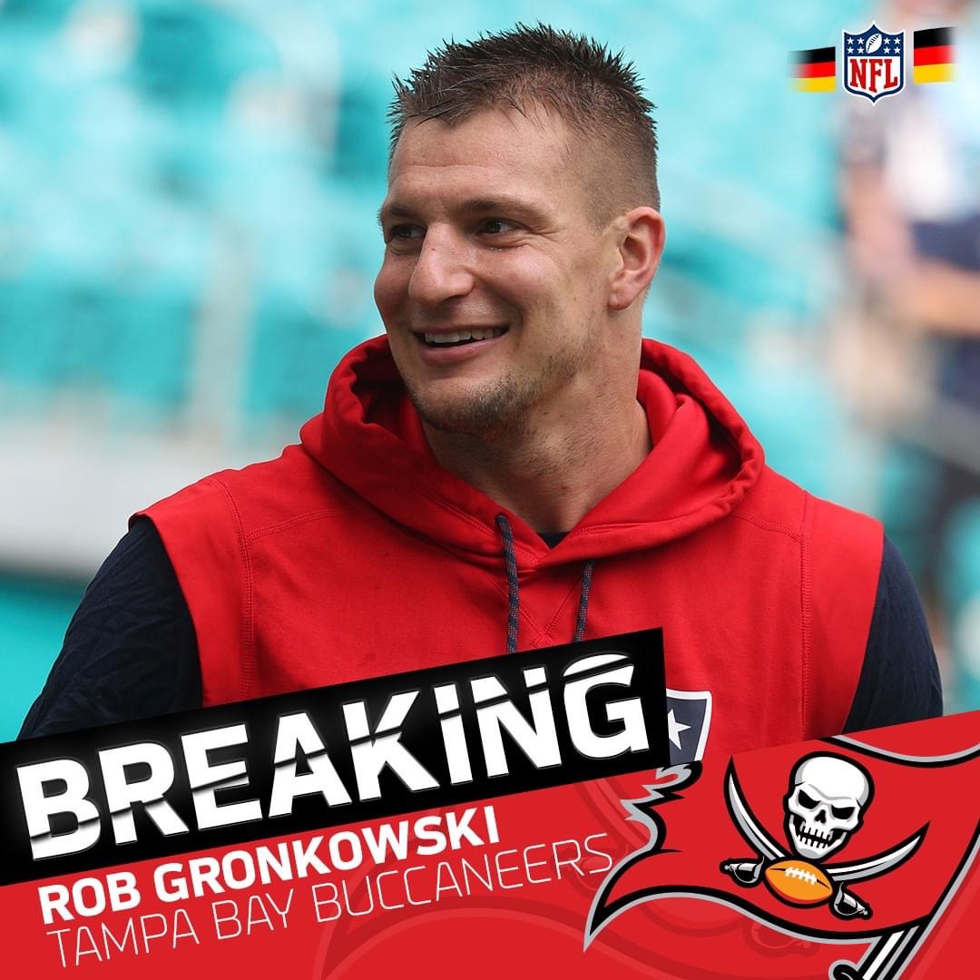 Gronkowski hat den Patriots angeblich mitgeteilt, dass er wieder Football spielen will. Und zwar mit Brady in Tampa Bay. Der hat ihn dort heute am Flughafen abgeholt.