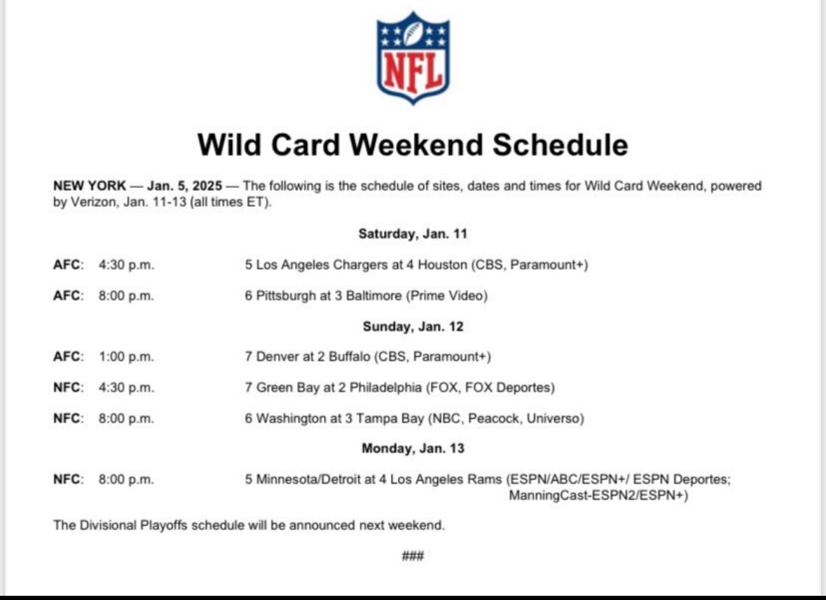 Mein Tipp wäre Detroit @Colts (Wunsch: Detroit @ Chiefs)