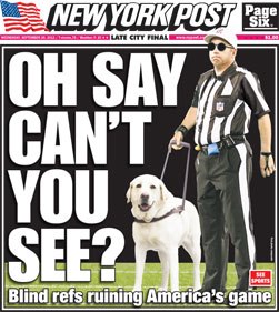 "Have you ever seen a standing ovation for referees? I'm guessing that at all 15 games this week we're going to see them. Maybe ironically, but still, wait until the first time Mike Carey, Hochuli, or any of the guys in white hats flips that mic on to call a penalty. The stadiums are going to erupt. Then everyone will get mad at the next call and start calling them bums. It's going to be great."
