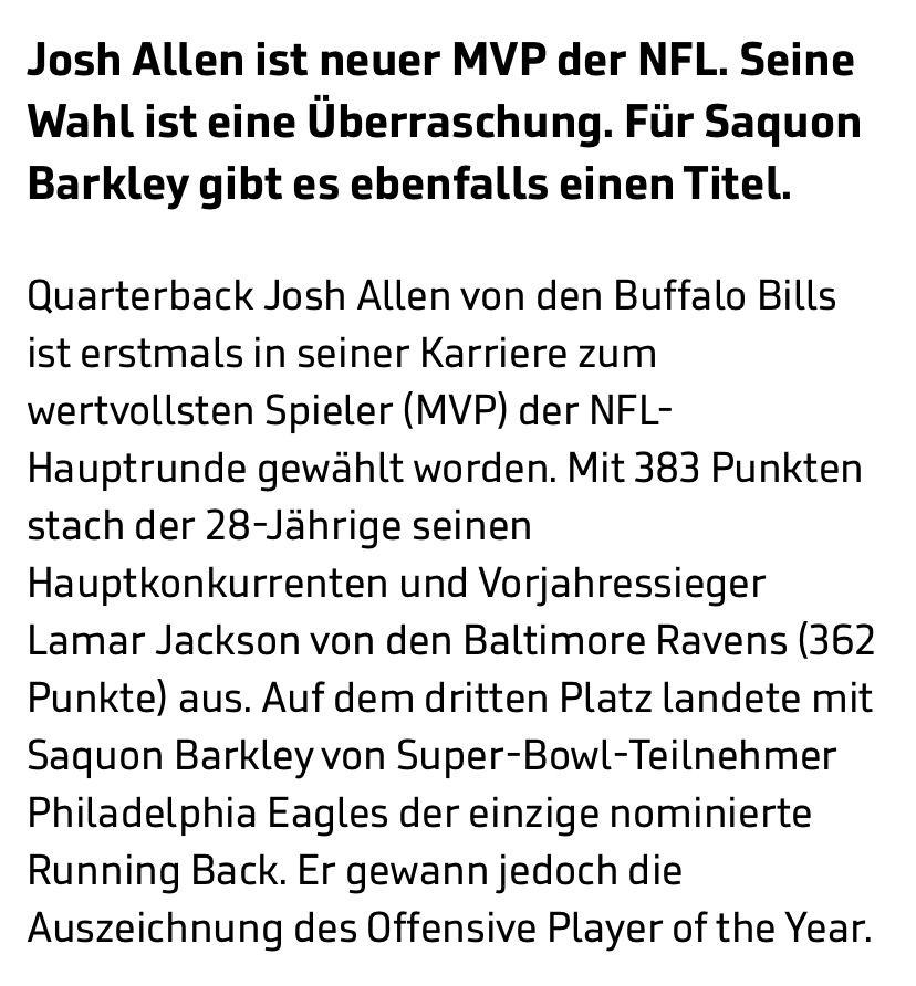 Bessere Entscheidung als nochmals Lamar aus meiner Sicht. Ich hätte Barkley gesehen.