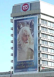 in wellington die seitenwand der post mit ner sonderbriefmarke verziert
