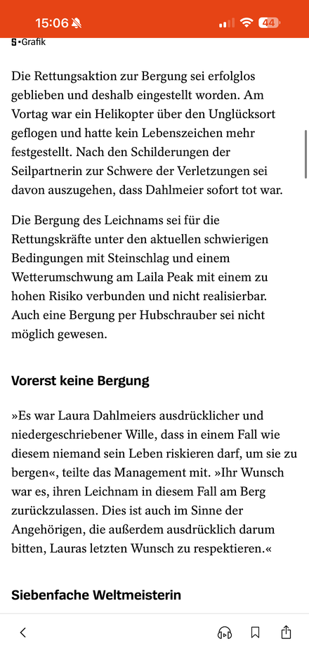 Laut Spiegel wahrscheinlich sofort tot. Leichnam wird wohl (so schnell) nicht geborgen. Was ein furchtbares Ende eines besonderes Lebens.