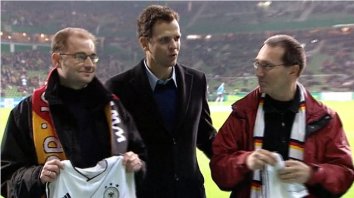 Bierhoff hat die Wichtigkeit des Fanclubs betont usw. und uns dann jedem ein neues "Heimtrikot" übergeben.