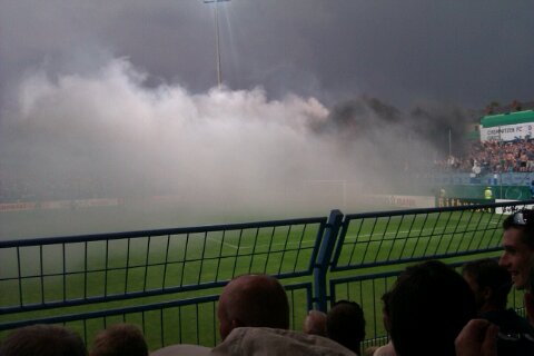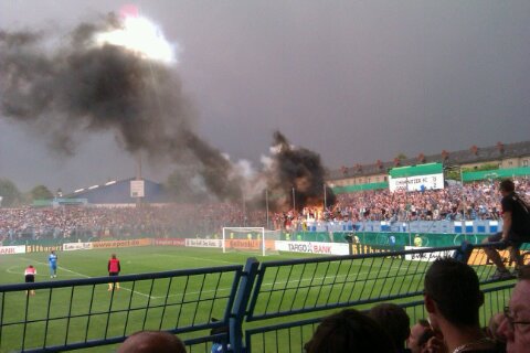 ja nen paar schwarze und weiße rauchbomben in der chemnitzer südkurve und noch irgendwas leuchtendes auf der gegengerade...