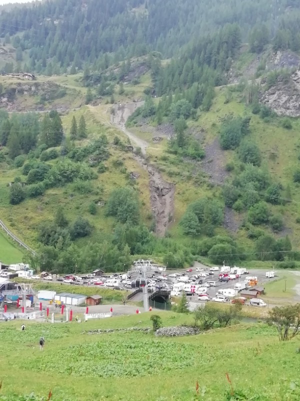 Ich stehe quasi unterhalb. Ging ganz schön was runter...Normalerweise dürfte ich nun aber noch wegkommen. hoffe ich zumindest. im Moment stillstand. Polizei auch nicht zu sehen. Bin gespannt, ob morgen alles normal läuft. die teams muessen ja alle noch nach Albertville...