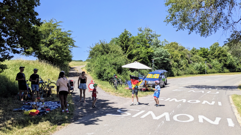 Wer heute schon schaut: Wir stehen 4,8km vor dem Ziel in Bad Dürrheim. Aus Aasen raus. Wetter ist perfekt, macht Spaß.