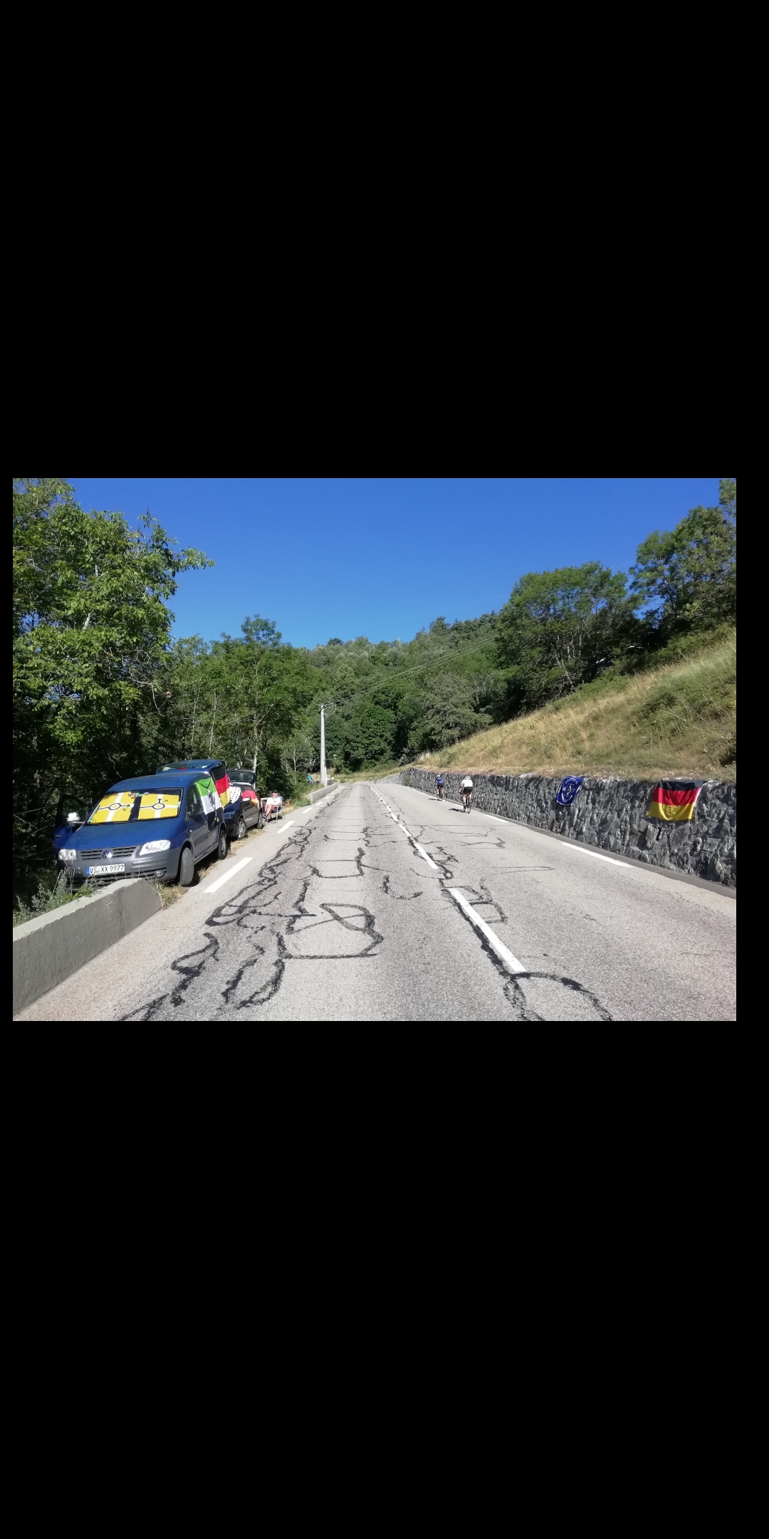 Wir stehen nach Kurve 15, ca. 3, 4km nach Beginn des Anstiegs (ca. 10,4km bis zum Ziel). Gladbach - Flagge und HSV-Supporters Club :rolleyes: vom Kollegen gehisst.