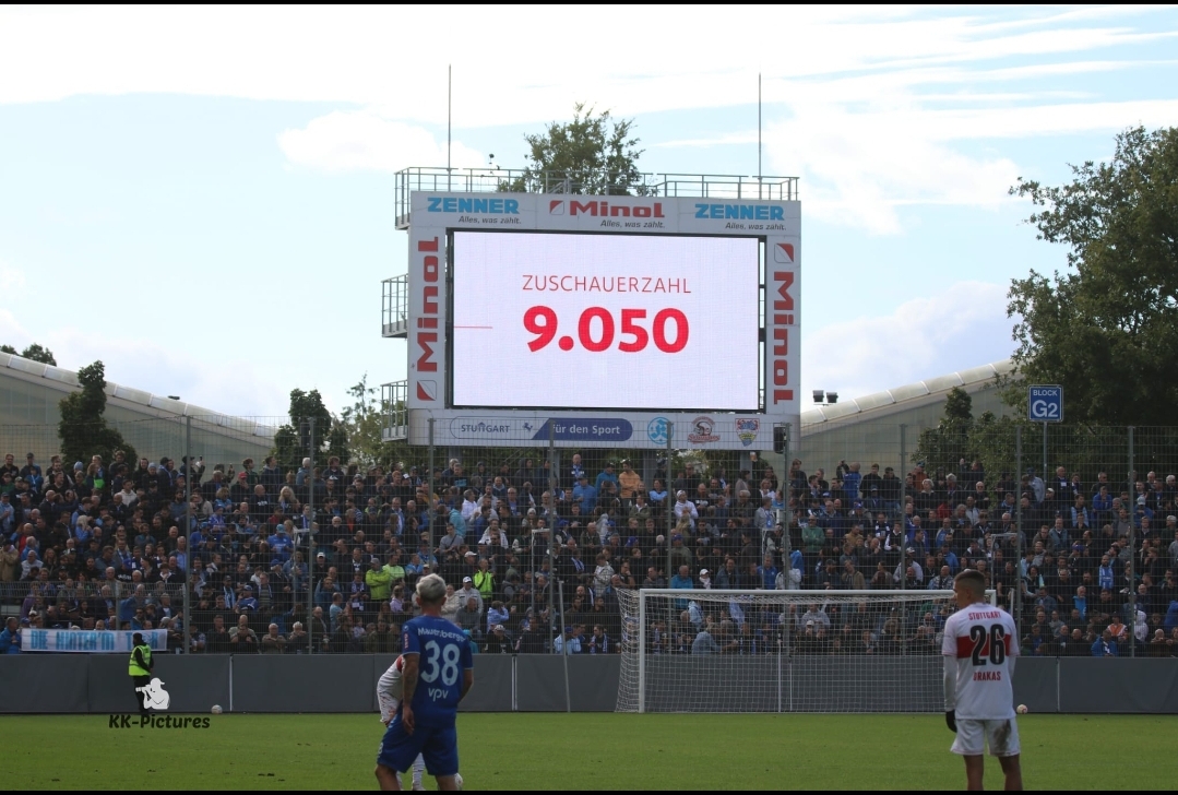 9.050 Zuschauer heute bei Stuttgarter Kickers - VfB Stuttgart 2 in der Regionalliga. Nicht schlecht. Spiel endete 2:0 (0:0).