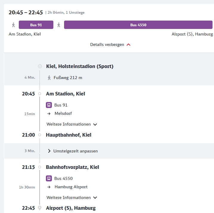 wie realistisch ist es, nach dem Hamburg Spiel folgende Busverbindung zu bekommen?