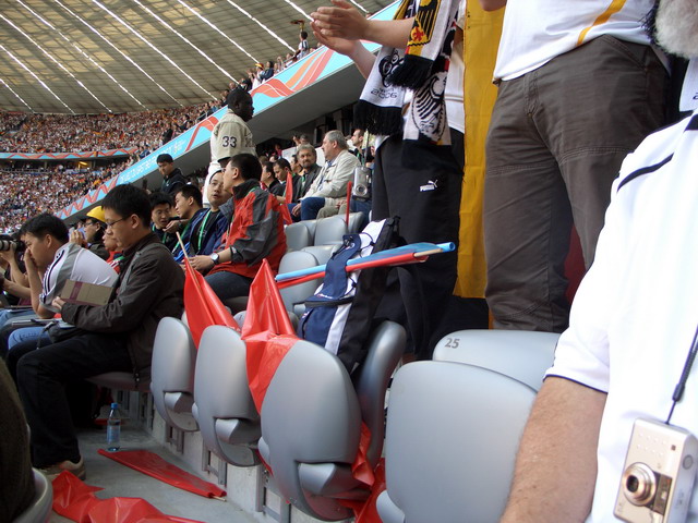 so ne Langeweile. und es gibt sooo viele, die das Spiel gerne gesehen hätten...Allerdings! Mein Bruder (wohnt bei Muenchen) war einigermassen bewegt, als ich ohne ihn ins Stadion abgerauscht bin. Und was sehe ich um mich rum. Sicher 30 freie Plätze. Hier das Beweisbild aus der (geilen) ersten Halbzeit