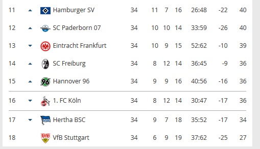 Denke eher wir machen auf Nürnberg und werden 16. wegen der Tordifferenz.