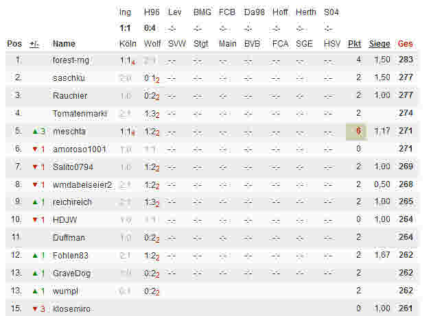 Muss nur mal schauen, ob ich VfB-VfL heute durchsetzen kann beim sky-Schauen oder ob die Meute nach Konferenz ruft. Hat heute bei 7 Spielen natürlich auch was...