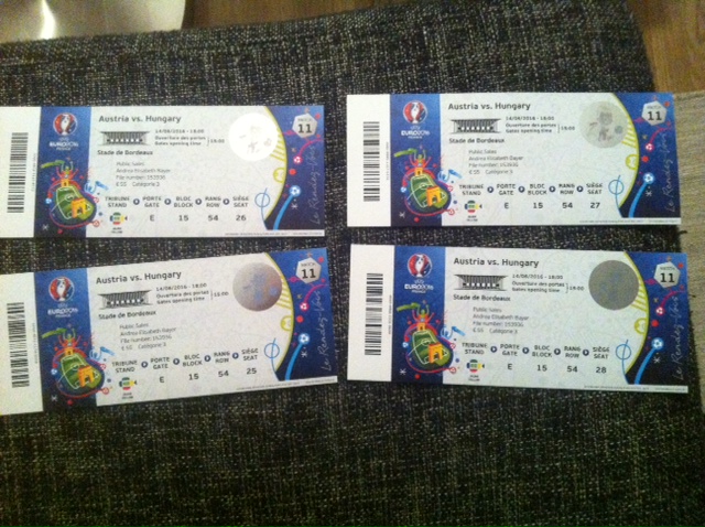 Habe noch vier Tickets für Österreich - Ungarn auf Lager, und zwar in der Kat.2.