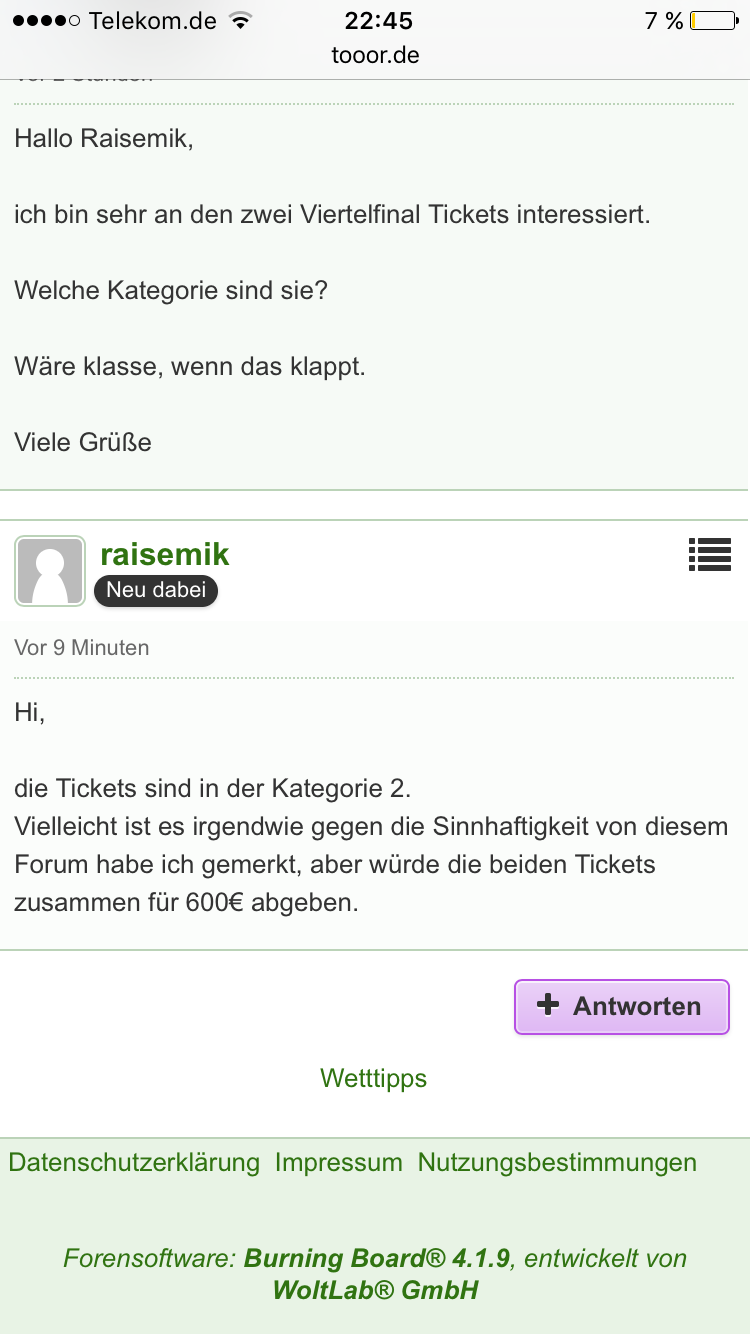 600 EUR für 2 x Kat 2 !!!