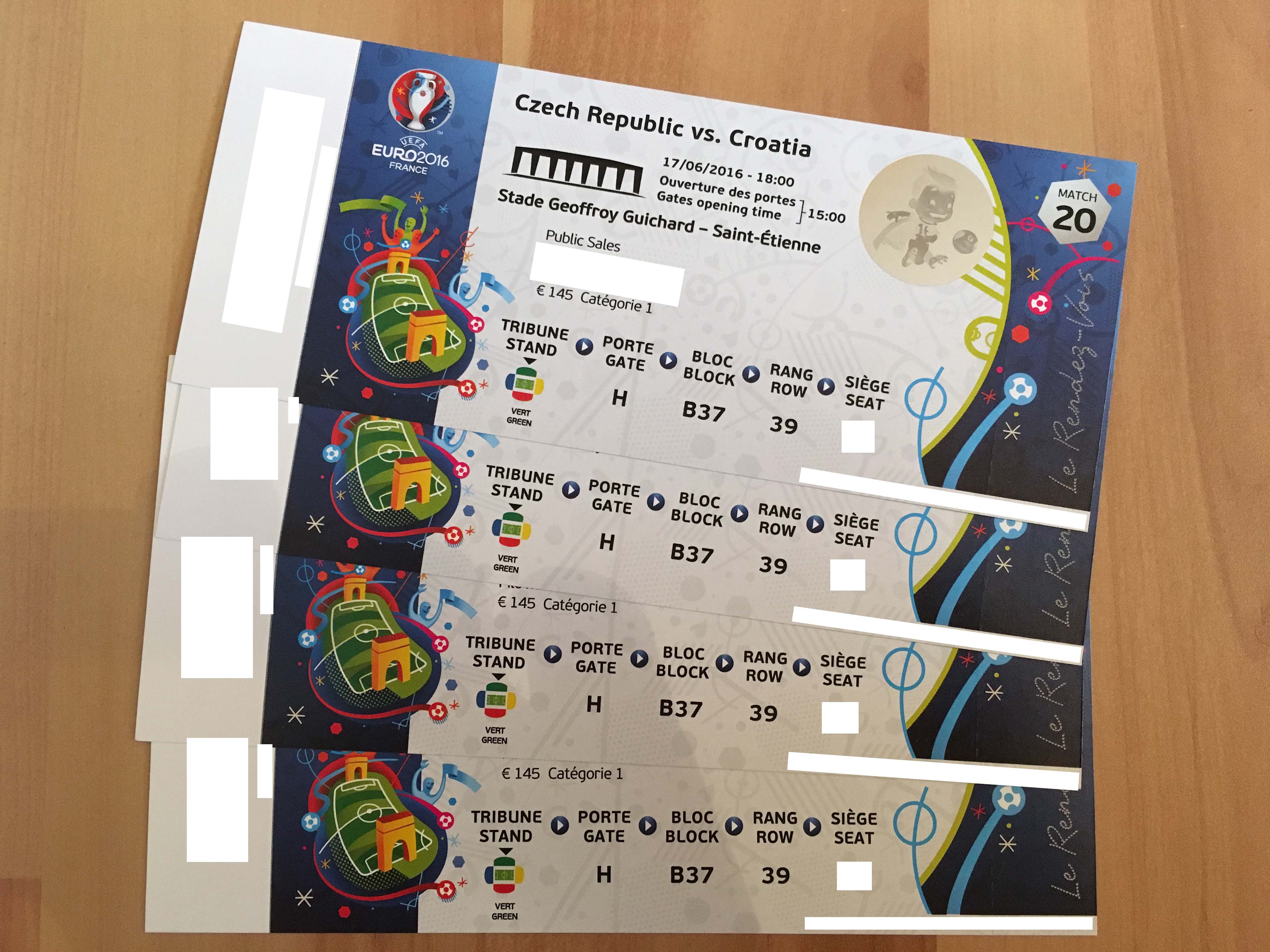 Biete 4 Tickets für das Gruppenspiel TSCHECHIEN : KROATIEN (Kategorie 1) | Preis verhandelbar!