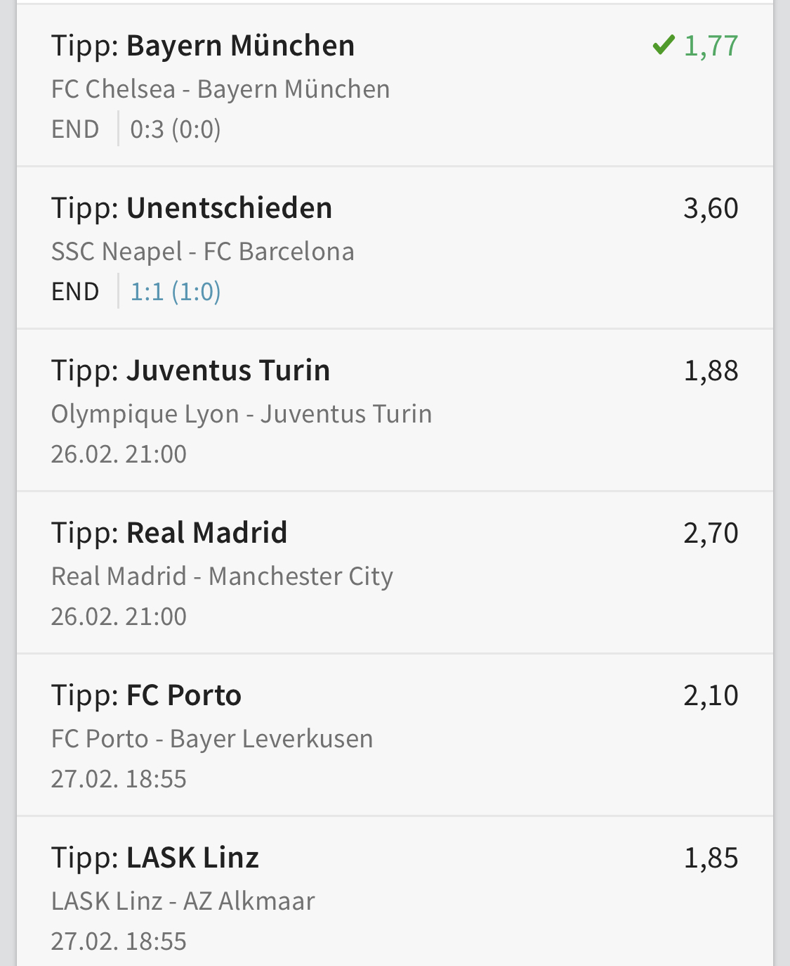 Chelsea - Bayern, über 2,5 Tore und beide treffen