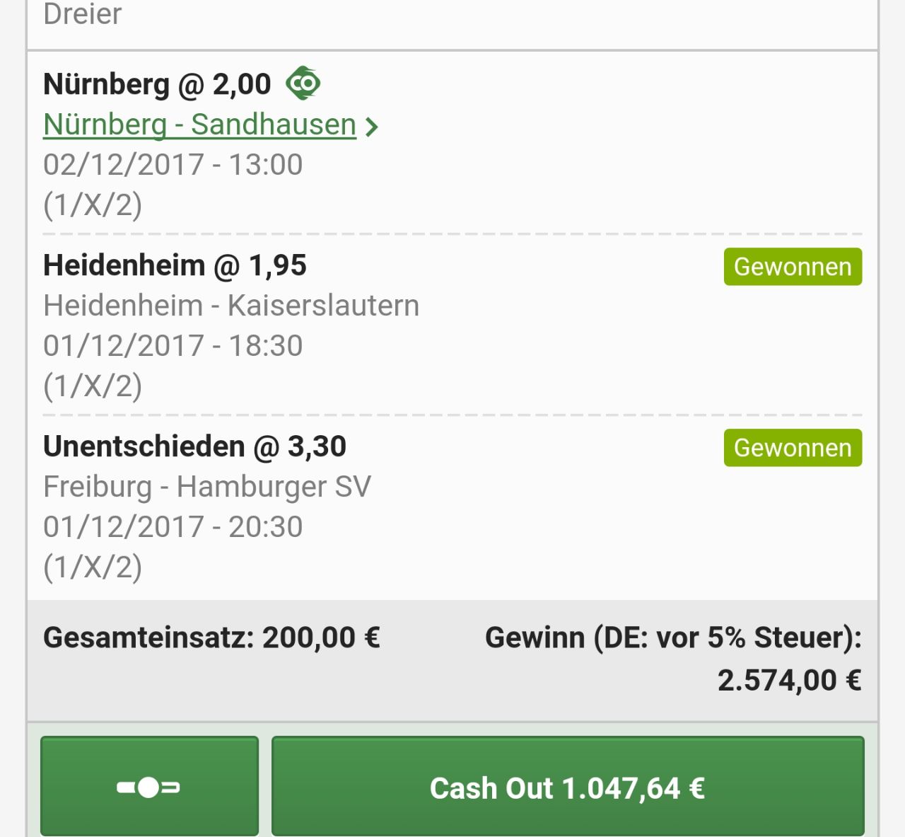 Habe es auszahlen lassen , und kurz darauf wurden die 7 min Nachspielzeit angezeigt . Habe 84 € ausgezahlt bekommen ....